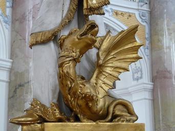 Keywords: Basilika Vierzehnheiligen 025.JPG Altar of the Vierzehnheiligen Die Basilika Vierzehnheiligen bei Bad Staffelstein im Landkreis Lichtenfels ist eine Wallfahrtskirchen in Oberfranken <br>Detail decorations on the Altar of the Fourteen Holy Helpers Basilica of the Fourteen Holy Helpers Bad Staffelstein near Bamberg in Bavaria Germany Own Mattana 2009-04-16 Images by Mattana-Bamberg Germany Baroque altars in Basilika Vierzehnheiligen Baroque statues in Upper Franconia Statues of dragons |