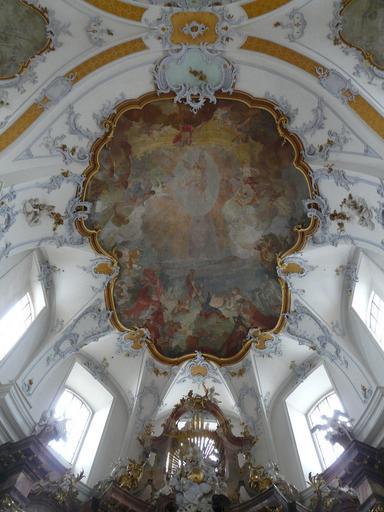 Keywords: Basilika Vierzehnheiligen 032.JPG Die Basilika Vierzehnheiligen bei Bad Staffelstein im Landkreis Lichtenfels ist eine Wallfahrtskirchen in Oberfranken <br>Frescos above the main altar Basilica of the Fourteen Holy Helpers Bad Staffelstein near Bamberg in Bavaria Germany Own Mattana 2009-04-16 50 115735 11 054025 region DE Images by Mattana-Bamberg Germany Frescos in Basilika Vierzehnheiligen |