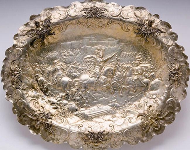 Keywords: Basin of John Casimir Vasa.jpg Artwork en Basin decorated with the conquest of Carthage pl Misa ozdobiona sceną podboju Kartaginy Silver cm 98 Moscow Kremlin Armoury Object history s 1640 commission John Casimir Vasa ProvenanceEvent 1651 gift Alexis I of Russia Moscow John II Casimir of Poland Warsaw own BurgererSF ca 1640 David Schwestermüller Augsburg Other versions <gallery> File Ewer of John Casimir Vasa jpg Ewer </gallery> West-european tableware in the Museums of Moscow Kremlin Tableware from the Polish Vasa Collection Trays Silverware from Augsburg |