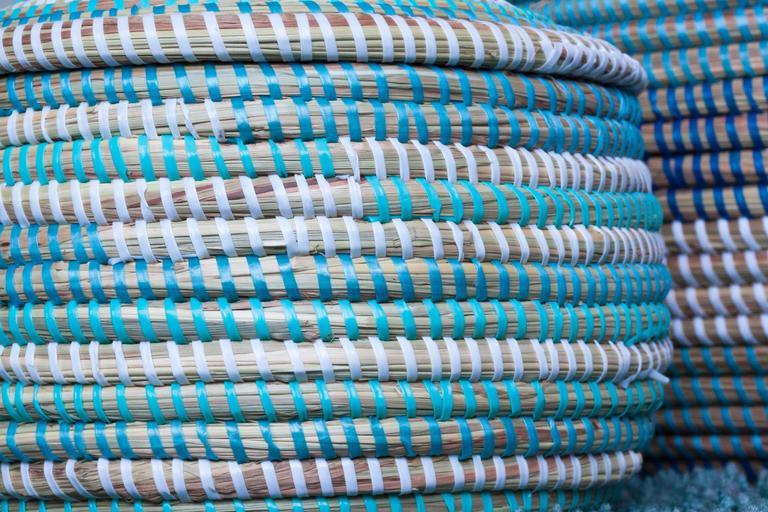 Keywords: basket raffia basket turquoise white blue structure container bast