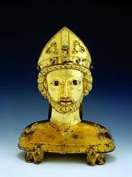 Keywords: Basle Munster treasury reliquary StPantalus 1882-87 HMB c4286.jpg object type LangSwitch Basle after 1270; Silver and copper embossed engraved gilded; height 49 cm; Inv 1882 87 Bâle après 1270; Argent et cuivre repoussés ciselés dorés; H 49 cm ; Inv 1882 87 Basel nach 1270; Silber und Kupfer getrieben graviert vergoldet; H 49 cm; Inv 1882 87 place of creation after 1270 Kupfer- und Silberblech getrieben und vergoldet; Edelsteine Perlen; Pigmente mit Bindemittel Augen schwarz Mund rot bemalt Gewicht 5668 g H 49 cm B 36 8 cm T 22 4 cm Institution Historisches Museum Basel object history credit line accession number Inv 1882 87 Peter Portner Institution Historisches Museum Basel artwork license PD-old-100 photo license cc-by-sa-4 0 photo date 2007-01-08 14 59 14 other versions 47 5544 7 59 cc-by-sa-4 0 Historisches Museum Basel CH-HMB Basel Cathedral Treasury Uploaded with UploadWizard Basler Münsterschatz Christian art Saint Pantalus |