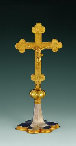 Keywords: Basle Munster treasury standing cross 1909-475 HMB c4177.jpg object type LangSwitch Basle ca 1493; Silver embossed engraved parcel gilt ; height26 8 cm; Inv 1909 475 Bâle vers 1493; Argent repoussé ciselé partiellement doré; H 26 8 cm; Inv 1909 475 Basel um 1493; Silber vergoldet graviert trembliert gegossen; H 26 8 cm; Inv 1909 475 place of creation um 1493 Silber vergoldet graviert trembliert gegossen; Rubin Gewicht 354 9 g H 26 8 cm; H 15 7 cm Kreuz ; B 11 7 cm Kreuzarm Institution Historisches Museum Basel object history Münsterschatz Basel credit line accession number Inv 1909 475 Peter Portner Institution Historisches Museum Basel artwork license PD-old-100 photo license cc-by-sa-4 0 photo date 2007-01-08 14 59 14 other versions 47 5544 7 59 cc-by-sa-4 0 Historisches Museum Basel CH-HMB Basel Cathedral Treasury Uploaded with UploadWizard Basler Münsterschatz Christian art Crucifixes in Switzerland Standing crucifixes |