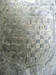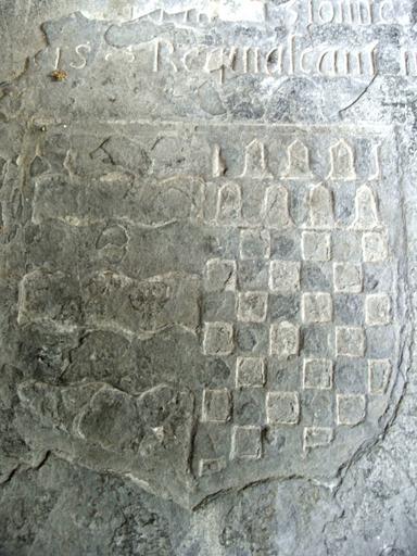 Keywords: BassetChichesterArmsAtheringtonChurchDevon.JPG en Slate slab top of chest tomb of Sir Arthur Basset 1541-1586 of Umberleigh and his wife Elizabeth Chichester daughter of Sir John Chichester d 1569 of Raleigh showing arms of Basset impaling Chichester own photo own photo Photo 2012 Interior of St Mary's Atherington |