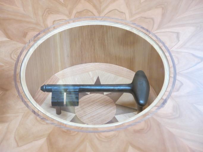 Keywords: Bastille key and gueridon table given by Barack Obama to François Hollande 2.jpg en Key of the fortress of la Bastille and gueridon table given by Barack Obama to François Hollande during the state visit from 10 to 12 february 2014 Shown in the palais de l'Élysée Paris France during the European Heritage Days 2014 The key is a replica of the one given by la Fayette to Georges Washington as symbol of freedom The guéridon table was made with the wood of a 235 years old oak planted during presidency of Georges Washington fr Clé de la Bastille et table guéridon donnés par Barack Obama à François Hollande lors de la visite d'état du 10 au 12 février 2014 Exposés au palais de l'Élysée Paris lors des Journées du Patrimoine 2014 La clé est une réplique de celle offerte par la Fayette à Georges Wahington comme symbole de liberté Le guéridon a été fabriqué avec le bois d'un chêne de 235 ans planté pendant la présidence de Georges Washington sf 2014-09-21 Tangopaso European Heritage Days 2014 in Paris - Palais de l'Élysée Gifts to François Hollande Président de la République Bastille Antique keys |
