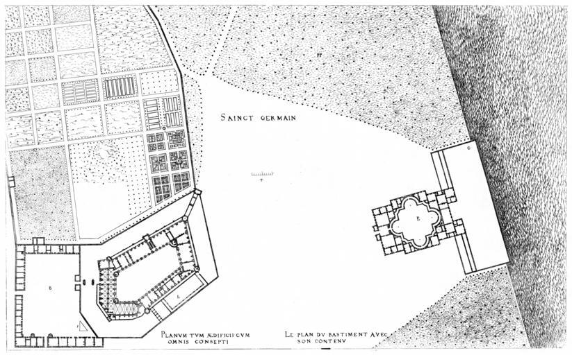 Keywords: Bastiments v1 (Gregg 1972 p57) - St-Germain-en-Laye general plan.jpg Engraving from Le premier volume des plus excellents Bastiments de France by Jacques I Androuet du Cerceau general plan of the Château de Saint-Germain-en-Laye Scan Androuet Jacques 1576 Le premier volume des plus excellents Bastiments de France Paris Reduced size reprint Gregg International 1972 ISBN 9780576154086 1576 Creator Jacques I Androuet du Cerceau PD-Art-100 Le premier volume des plus excellents Bastiments de France Gregg 1972 reprint Château Vieux de Saint-Germain-en-Laye Château Neuf de Saint-Germain-en-Laye Plans of castles in France |