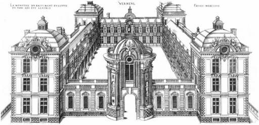 | Keywords: Bastiments v1 (Gregg 1972 p78) - Verneuil bird's-eye view entrance front second design.jpg Engraving from Le premier volume des plus excellents Bastiments de France by Jacques I Androuet du Cerceau Château de Verneuil-sur-Oise Bird's-eye view of the entrance front second design Scan Androuet Jacques 1576 Le premier volume des plus excellents Bastiments de France Paris Reduced size reprint Gregg International 1972 ISBN 9780576154086 1576 Creator Jacques I Androuet du Cerceau PD-Art-100 Le premier volume des plus excellents Bastiments de France Gregg 1972 reprint Château de Verneuil-sur-Oise Bird's-eye view |