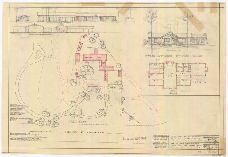 | Keywords: bastrop state park bastropstatepark texas state parks texasstateparks civilian conservation corps civilianconservationcorps ccc drawing map sketch document text writing Specific date: 12/21/1934 Pencil, red pouche, red & black ink on tissue; elevations, floor plan, plot plan. LN: 32.625 X HT: 22.25 Specific date: 12/21/1934 Pencil, red pouche, red & black ink on tissue; elevations, floor plan, plot plan. LN: 32.625 X HT: 22.25 | ||||