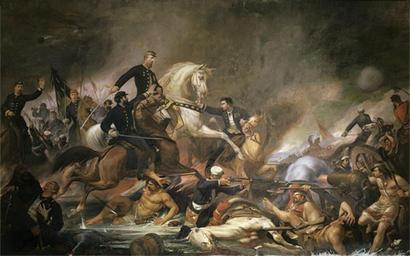 | Keywords: Batalha de Campo Grande - 1871.jpg  Artwork Creator Pedro Américo Batalha de Campo Grande Battle of Campo Grande 1871 Oil on canvas cm 332 530 Institution Museu Imperial http //www dezenovevinte net/bios/bio_pa_arquivos/pa_1871_campogrande jpg Other versions PD-old-100 Herculano Sancho da Silva Pedra Paintings by Pedro Américo Academic paintings in Brazil Paintings in the Museu Imperial War of the Triple Alliance 19th-century paintings of battles History of Brazil 1840-1889 Pedro II Reign 1870s paintings from Brazil Prince Gaston Count of Eu Alfredo d'Escragnolle Taunay 19th-century oil on canvas paintings Night in paintings ImageNote 1 100 131 22 25 620 387 2 Alfredo d'Escragnolle Taunay Viscount of Taunay ImageNoteEnd 1 ImageNote 2 211 75 29 28 620 387 2 Gaston Count of Eu ImageNoteEnd 2 ImageNote 3 515 235 18 20 620 387 2 Pedro Américo self-portrait; the painter did not fight in the war ImageNoteEnd 3 ImageNote 4 503 241 13 15 620 387 2 Aurélio de Figueiredo brother of Pedro Américo ImageNoteEnd 4 ImageNote 5 330 146 24 24 620 387 2 Captain Almeida Castro ImageNoteEnd 5 ImageNote 6 172 138 23 21 620 387 2 Rufino Eneias Gustavo Galvão then Colonel later the Viscount of Maracajú ImageNoteEnd 6 ImageNote 7 540 162 14 14 620 387 2 Colonel Herculano Sancho da Silva Pedra ImageNoteEnd 7 ImageNote 8 63 274 27 24 620 387 2 Captain Arouca ImageNoteEnd 8 ImageNote 9 17 249 30 28 620 387 2 Friar Fidelis d ™Avila ImageNoteEnd 9 ImageNote 10 156 149 15 18 620 387 2 Major Benedicto de Almeida Torres ImageNoteEnd 10 ImageNote 11 18 122 19 22 620 387 2 Captain João Mendes Salgado of the Brazilian Navy ImageNoteEnd 11 ImageNote 12 71 167 16 16 620 387 2 Lieutenant Colonel Carlos de Morais ImageNoteEnd 12  |