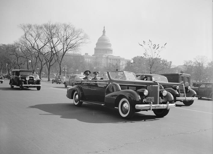 | Keywords: BatistaCapitolCadillac1938.jpg LargeImage Batista sees the Capitol for the first time Washington D C Nov 10 Fulgencio Batista the Cuban Army Sergeant who has risen to the heights of a Caribbean Dictator arrived in Washington today This is the first time the Cuban Dictator has set foot outside his native land in thirty seven years Gen Malin Craig the Chief of Staff is shown with him as they pass the Capitol 11/10/38 Batista is in back of car in the larger peaked hat riding in a 1938 Cadillac Series 75 convertible sedan Fleetwood style 7529 Car to right is a 1935 Cadillac Car behind is a 1930 Buick Sedan Discussion and vehicle identification at http //www shorpy com/node/6638 Shorpy com Harris Ewing photograph via Library of Congress website at http //hdl loc gov/loc pnp/hec 25353 converted from TIFF to jpg and border cropped before upload to Commons 1938-11-10 Harris Ewing No known restrictions on publication PD-Harris-Ewing 1938 Cadillac automobiles Fulgencio Batista 1938 in Washington D C 1935 Cadillac automobiles 1930 Buick automobiles |