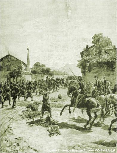 Keywords: Battaglia Varese 1859 Matania.jpg watermark en Second Italian War of Independence Garibaldi's Hunters of the Alps repel the attack of the Austrian division Urban in the Battle of Varese May 26 1859 Lithograph of the time reduced and modified it Seconda Guerra d'Indipendenza I Cacciatori delle Alpi di Garibaldi respingono l'attacco della Divisione Austriaca del Generale Urban nella Battaglia di Varese il 26 maggio 1859 Litografia dell'epoca ridotta e modificata Francesco Bertolini Storia del Risorgimento italiano F lli Treves Editori Milano 1889 Edoardo Matania 1847 “1929 1889 PD-old Battle of Varese Edoardo Matania Storia d'Italia by Francesco Bertolini 1859 in Italy |