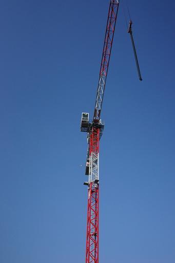Keywords: baukran crane build site sky construction work lattice boom crane crane boom boom white red