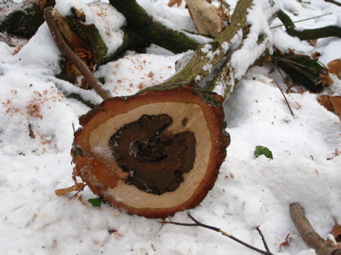 Keywords: baumstam tree grates sawn wood snow nature winter