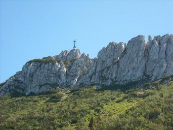 Keywords: bavaria alpine kampenwand rock sun sky blue summit cross