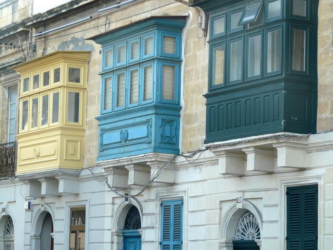 Keywords: bay window colorful picturesque architecture building facade valletta malta