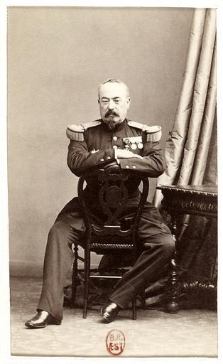 | Keywords: Bazaine Disdéri BNF Gallica.jpg François Achille Bazaine 1811 - 1888 alors Maréchal de France Général en Chef de l'Armée du Rhin capitula à Metz en 1870 François Achille Bazaine 1811 - 1888 was marshal of France and General in Chief of the Armée du Rhin when he surrendered with all his army in Metz in 1870 1860 2013-04-12 for upload ARK-BNF Creator André Adolphe Eugène Disderi Upload stitch and restoration by Jebulon http //gallica bnf fr/ark /12148/btv1b8432966c/f10 item cleaning of dirt spots tears and scratches due to age Reduction of saturation increase of constrasts Size and crop With GIMP François Achille Bazaine photograph 12 24 17 April 2013 UTC Bazaine Disdéri BNF Gallica jpg PD-Art-100 Uploaded with UploadWizard François Achille Bazaine 19th-century portrait photographs of sitting men at full length Black and white portrait photographs of military people in uniform Chairs in portraits Curtains in art Tables in portrait photographs André Adolphe Eugène Disderi Valued images by Jebulon Valued images of people of France |