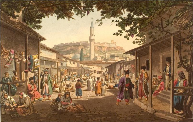Keywords: Bazar of Athens.jpg Bazar of Athens Edward Dodwell Views in Greece London 1821 p 51 http //digi ub uni-heidelberg de/diglit/dodwell1821/0051 scan 1821 Creator Edward Dodwell PD-old-100 Edward Dodwell Athens in the Ottoman era