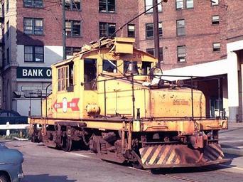 | Keywords: outdoor Electrified BC Hydro GE steeple cab locomotive (BCH 961) parked off 000-block West Pender Street in Vancouver, BC. The former BC Electric Railway Co. head office building is visible in the background (became a Bank of Montreal in 1958). The locomotive was finishing her days as a switcher in the BC Electric Carrall Street yards on Pender Street in downtown Vancouver. (BC Hydro, a British Columbia Crown Corporation, purchased BCER Co. in 1961.) [Joe Testagrose collection; Photographer unknown] Its sister, BC Hydro Railway GE steeple cab No. 960 is at the West Coast Railway Heritage museum at Squamish, BC. Source: www.google.ca/imgres?imgurl=http://www.wcra.org/images/BC... Electrified BC Hydro GE steeple cab locomotive (BCH 961) parked off 000-block West Pender Street in Vancouver, BC. The former BC Electric Railway Co. head office building is visible in the background (became a Bank of Montreal in 1958). The locomotive was finishing her days as a switcher in the BC Electric Carrall Street yards on Pender Street in downtown Vancouver. (BC Hydro, a British Columbia Crown Corporation, purchased BCER Co. in 1961.) [Joe Testagrose collection; Photographer unknown] Its sister, BC Hydro Railway GE steeple cab No. 960 is at the West Coast Railway Heritage museum at Squamish, BC. Source: www.google.ca/imgres?imgurl=http://www.wcra.org/images/BC... |