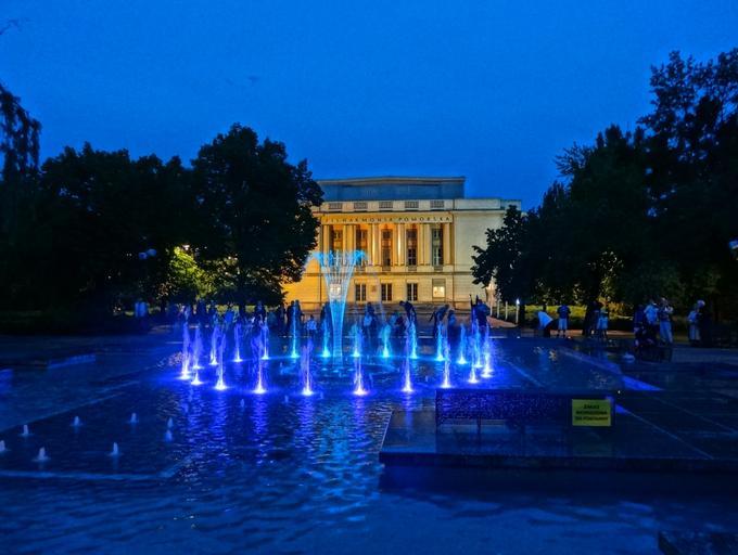 Keywords: Bdg FilharmoniaPomorska fountain 2 5-2014.jpg pl Fontanna przed budynkiem Filharmonii Pomorskiej im Ignacego Jana Paderewskiego w Bydgoszcz przebudowana w 2014 r Dysponuje podświetlanymi dyszami wodnymi sterowanymi elektronicznie np w rytm muzyki 2014-05-24 21 25 46 own Pit1233 cc-zero Uploaded with UploadWizard Philharmonic Fountain in Bydgoszcz at night |