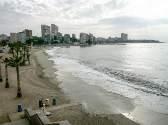 Keywords: beach albufereta alicante alicante tourism autumn rain sea mediterranean sea landscapes spain