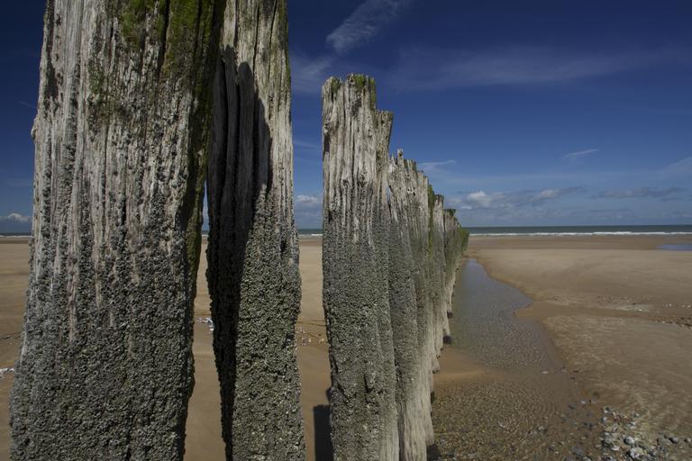 Keywords: beach bar post pile coast water bollard sky blue dune crusher swell breakwater composition