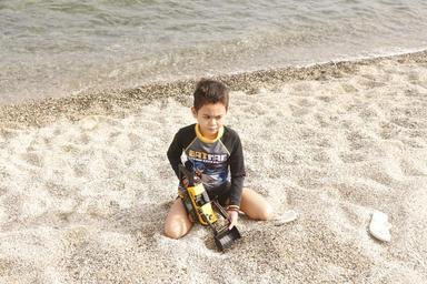 Keywords: beach boy summer child sea outdoor vacation toy