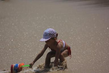 Keywords: beach kids playing children the little girl