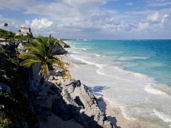 Keywords: beach ocean water sand sun sea tropical landscape tulum mexico wave scenic seascape tranquil