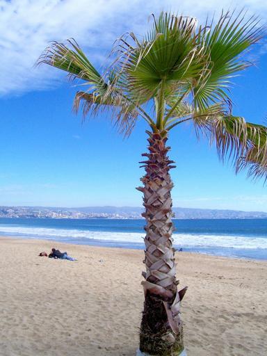 Keywords: beach palm sand sea palm tree viña del mar valparaíso chile beach sand clouds summer tranquil season