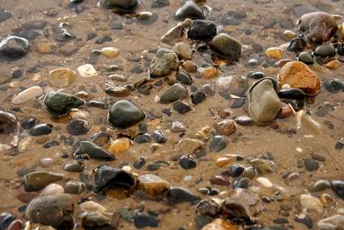 Keywords: beach pebbles shells water sea coast shore outdoor coastline stone surf sand