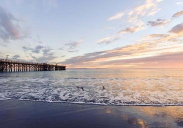 Keywords: beach pier wooden jetty ocean sunset sea water shore summer sky landscape seaside seascape peaceful tranquil waves scenic sand