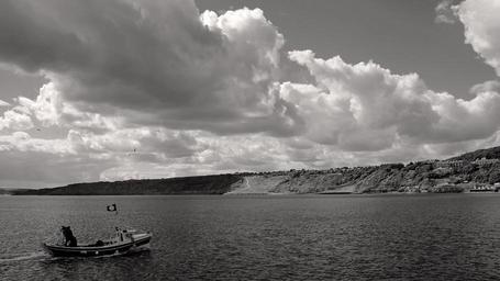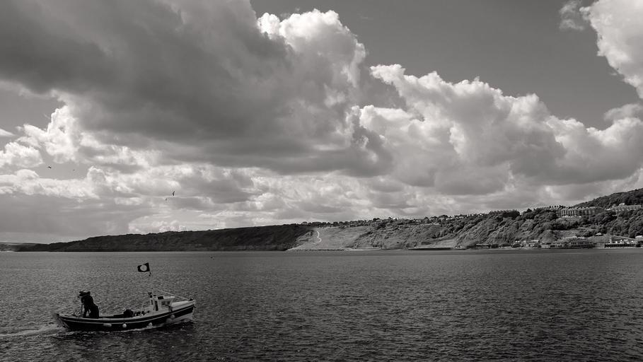 Keywords: beach sand shore people sea waves tides destination relaxation vacation holiday scarborough england boats yachts background landscape skies clouds cloud cloudy black white