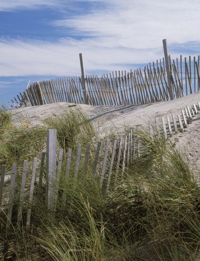 Keywords: beach scene dunes fence grass summer sand nature landscape sky coast water ocean outdoor scenic coastline seaside sunny