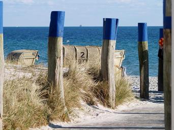 Keywords: beach sea access beach chair sand holiday tourism sky blue wassser dune grass wind baltic sea island