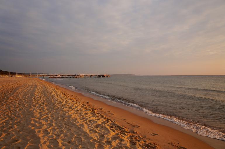 Keywords: beach sea the baltic sea sunrise sand the pier the waves sky sandy beach the coast rest poland