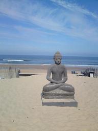 Keywords: beach sea north sea republiek bloemendal holland coast beach bar buddha statue chill out relax summer holiday relaxation rum gammeln