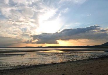 Keywords: beach sea water sky reflection sunset ocean seascape shore clouds