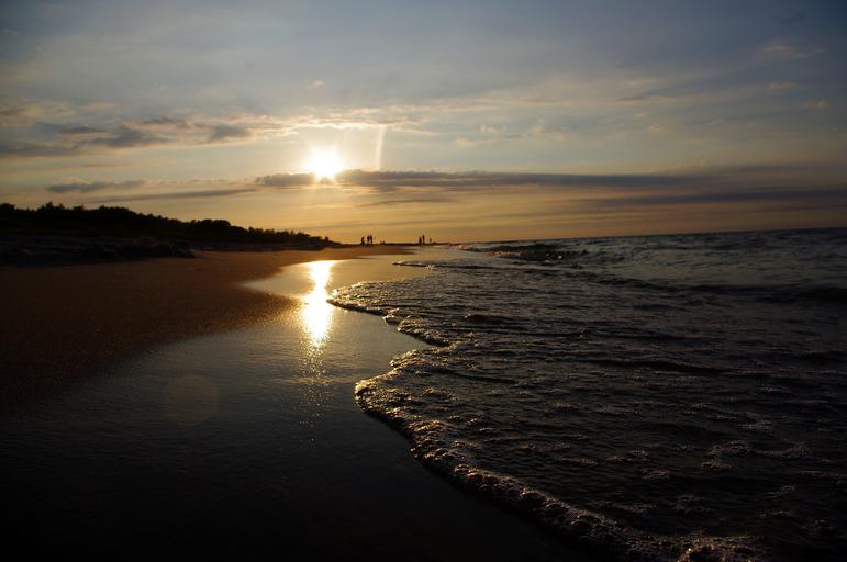 Keywords: beach sea west the sun sunset water evening colors the background wallpaper theme sand the waves