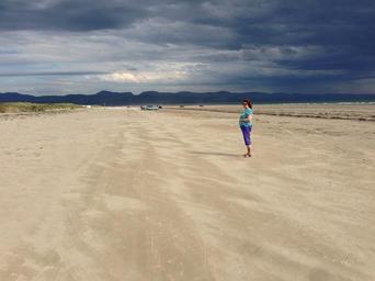 Keywords: beach sky clouds sand lonely lone loneliness woman holiday
