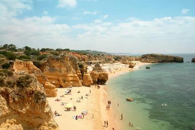 Keywords: beach vacations people sun cliff sea sand summer ocean water sunshine rocks cliffs tanning umbrellas swimming coast sky clouds