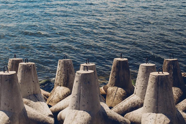 Keywords: beach water sea summer ocean breakwater stones shore vacation nature blue coast