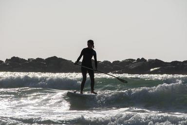 Keywords: beach wave surfer water sea water sports wetsuit surfboard paddle surf
