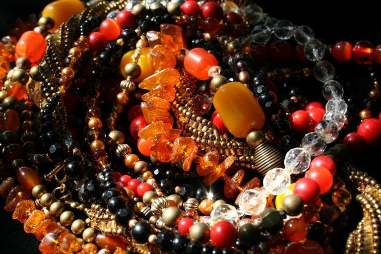 | Keywords: beads bead necklaces multi-colored amber amethyst glass beads red yellow purple gold crystal round faceted natural amber solid amber beads metalic beads strings of beads artistically strubg beads necklace jewelry jewellery ornamental hobby bright |