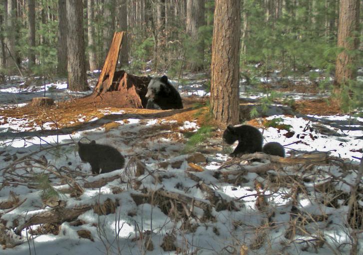 | Keywords: michigan huron-manistee huronmanistee national forests manistee/cadillac manisteecadillac ranger district wildlife black bear bears cubs outdoor Black bear cubs who first left their den site in early April. Please note - these photos have been edited. Shadows have been reduced to better see the cubs. Black bear cubs who first left their den site in early April. Please note - these photos have been edited. Shadows have been reduced to better see the cubs. | ||||