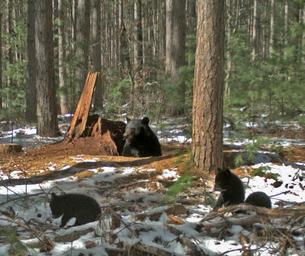 Keywords: michigan huron-manistee huronmanistee national forests manistee/cadillac manisteecadillac ranger district wildlife black bear bears cubs outdoor Black bear cubs who first left their den site in early April. Please note - these photos have been edited. Shadows have been reduced to better see the cubs. Black bear cubs who first left their den site in early April. Please note - these photos have been edited. Shadows have been reduced to better see the cubs.