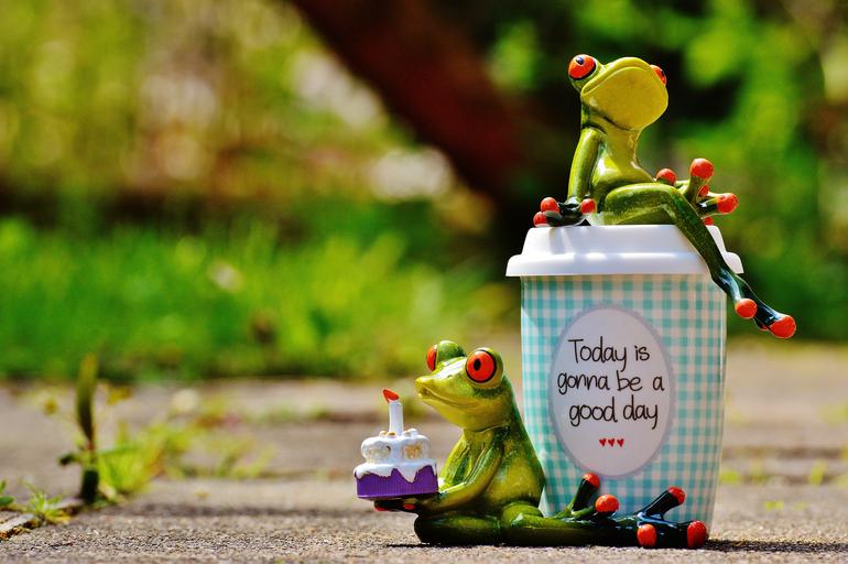 Keywords: beautiful day birthday joy frog coffee cup happy happiness start joy of life life is beautiful cute emotion funny good mood keep smiling cheerful beginning sweet pep talk smile laugh courage positive day frogs