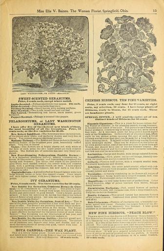 | Keywords: Beautify your homes (15727460754).jpg of last year and <br> another season's trial makes me heartily endorse it <br> New Double Ivy Geranium Galilee Another grand sort <br> One of the most remarkable of recent introduction The trusses <br> are of immense size flowers very large and double and of a <br> most charming shade of lovely rosy pmk varied with lilac A <br> magnificent variety <br> HOYA CARNOSA THE WAX PLANT <br> This is a lovely house plant Grows into a handsome plant <br> and bears large umbels of white flowers that are covered with <br> wax; hence its name It is very desirable 10 cents each <br> CHINESE HIBISCUS TEN FINE VARIETIES <br> Price 8 cents each; any four for 25 cents or eight <br> sorts my selection 50 cents I have large plants at <br> Hibiscus ready to bloom for 25 cents each These <br> are handsome plants <br> SPECIAL OFFER I will send the entire set of tea <br> distinct kinds of Hibiscus for 60 cents <br> Sinensis Gigauteus This is a plant for house culture dur <br> ing Winter or Summer or for planting outside during Summer <br> It blooms at all limes of the year The plan is branch freely autS <br> flower profusely commencing to bloom when not more than s <br> foot high As a specimen plant for large pots it has an equal <br> only in the Brugmansia Its flowers are of enormous size oftera <br> eight to ten inches across opening flat and of such a titjcI <br> crimson scarlet color that they can be seen for a long distance <br> like a flaming torch It is hard to find anything among flowers <br> more strikingly showy They can be wintered in the cellar or <br> pit with perfect safety and if one does not care to grow them all <br> Winter one should have one or two for Summer display No <br> plant is surer to grow and thrive under any treatment than this <br> and few can ever be so satisfactory <br> Auriantica Large and double with orange colored flowers <br> Grandiflorus Rich glossy cut-leaved foliage literally cov- <br> ering the plant with scarlet cnmson flowers <br> Collerii Flowers buff yellow with a crimson scarlet base <br> Peculiarly handsome and double <br> Zebrinus Double the outer petals scarlet edged witfj yel- <br> low Inner petais are very irregular curiously variegated Vfitli <br> creamy yellow and white <br> Versicolor A variety combining in its flowers all colore of <br> the whole family being handsomely striped crimson buff joae <br> and white Flowers eight inches in diameter <br> Maguif icus A very large flower and of perfect form Coior <br> a deep magenta edge of petals touched with brown foim ts <br> finely toothed <br> Carminiatus Perfectus Full round flowers of perfeei <br> shape and of a rich soft carmine rose with a deep crimson eya <br> Fully six inches m diameter <br> Double Crimson This grand variety has immense ffowera <br> of the richest crimson Combined wuh glossy foliage rendvrsii <br> best of all <br> Sub-Violaceous Flowers of enormous size a beautiful car- <br> mine tinted with vioiet Probably the largest flower of the Hr- <br> biseus family and an unusually free bloomer I talie greaX <br> pleasure in recommending this hne plant <br> NEW PINK HIBISCUS PEACH BLOW <br> This is a sport from the double red Hibiscus 'Rosea Sinensis <br> The flowers are double and from four to five inches in diameter <br> of a charming rich clear pmk color with small deep erimsou <br> center Itisoneof the freest flowering plant noveluesre <br> offered The color is an entirely new and beautiful shade aac2 <br> it blooms abundantly and continuously during the Summer and <br> Fall months Large plants two or three years old make a mag- <br> nificent show It will give general satisfaction to those who <br> grow it either in pots or planted out in the garden It blooms <br> well in the Winter in the greenhouse or in a sunny window <br> 20 cents each 41878692 131125 64689 Page 15 Text http //www biodiversitylibrary org/page/41878692 1918 10 1080/00222939708680643 Ella V Baines Firm ; Henry G Gilbert Nursery and Seed Trade Catalog Collection NameFound Brugmansia NameConfirmed Brugmansia Pers EOLID 61642 NameFound Hibiscus NameConfirmed Hibiscus L EOLID 60741 NameFound Hoya carnosa NameConfirmed Hoya carnosa EOLID 581249 NameBankID 2653482 NameFound Pelargonium NameConfirmed Pelargonium EOLID 11158713 NameBankID 1674593 NameFound Pelargonium NameConfirmed Pelargonium EOLID 11158713 NameBankID 2652507 NameFound Zebrinus NameConfirmed Zebrinus NameBankID 4385492 Biodiversity Heritage Library Beautify your homes 1901 Garden Stories Bulbs Plants Catalogs Flowers Plants Ornamental Roses Seed industry and trade Seeds Trade catalogs U S Department of Agriculture National Agricultural Library bhl page 41878692 dc identifier http //biodiversitylibrary org/page/41878692 bhlGardenStories BHLinbloom bulbs plants plants ornamental u s department of agriculture national agricultural library bhlgardenstories bhlinbloom Information field Flickr posted date ISOdate 2015-01-23 Check categories 2015 August 24 CC-BY-2 0 BioDivLibrary https //flickr com/photos/61021753 N02/15727460754 2015-08-24 08 53 08 cc-by-2 0 PD-old-70-1923 Beautify your homes Photos uploaded from Flickr by FĂŚ using a script |