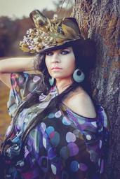 Keywords: beauty woman flowered hat cap cosmetics luck feeling hair hair styling black hair brunette shoulders bare eye shadow fantasy portrait face beautiful girl joy of life young healthy smile happy joy all wellness schönheitsköniging