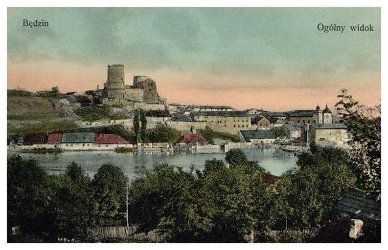Keywords: Bed005d.jpg Będzin na starej pocztówce Widok na zamek w Będzinie od strony wsi Gzichów stan początek XX wieku <br> Zródło plWiki załadowane przez Zuber PD-old Old postcards of Będzin