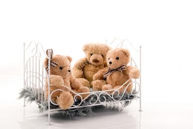 Keywords: bed crib bears beige family they sit bean bag plush mascots white studio