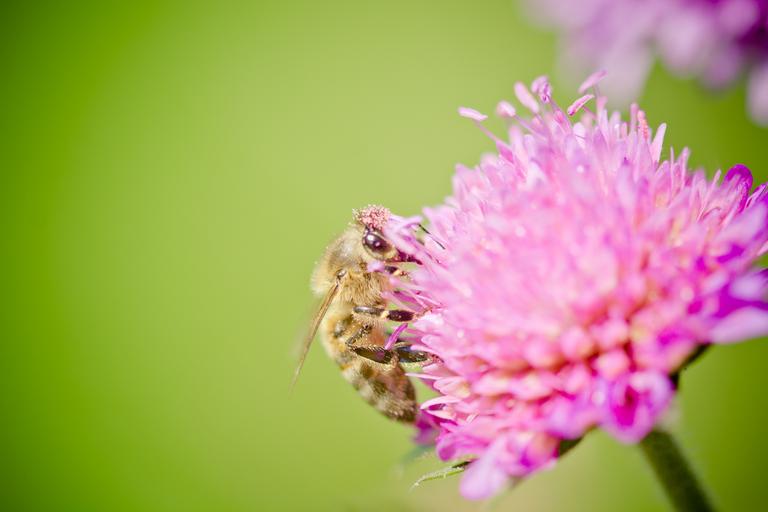 Keywords: bee blossom bloom pollen honey bee pollination summer animal meadow insect flower plant nature bee pollen close macro